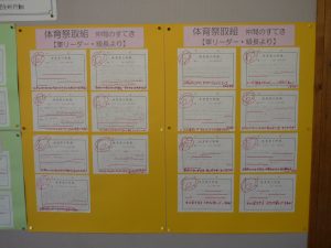さて、校内には、昨日終わったばかりの体育祭に関わる掲示物が、すでにたくさんお目見えしています。生徒たちの頑張りを称えたい、もらった感動をどうしても伝えたい・・・そんな職員の思いが透けて見える気がしますが、いかがでしょう。