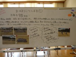 本日の1時間目は、各学級で体育祭の振り返りをしました。自信をもって「大成功 ‼️」と言える、南中だからこそできる、そんな体育祭でしたので、どの学級も、自分たちの得た “まぶしい財産” を笑顔で共有し合えた模様です