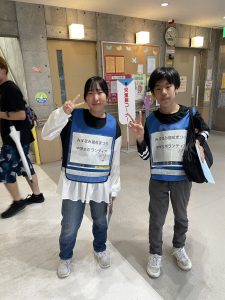 瑞浪市福祉センター(ハートピア)で行われた「みずなみ福祉まつり」に、1年伊藤暖さん、三輪田悠真さん、2年加藤穂高さんの3名がボランティアとして参加しました。実は他にも3年生7名ほどが参加の意志を示してくれたのですが、今回は「南中から3名」という枠があったため、それを後輩に譲ったかたちとなりました。ちなみにその7名は、地域の中で別のボランティア活動に従事したとか。気持ちのよい、ひたすら頼りになる生徒たちです。