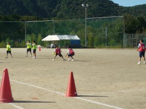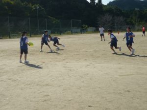 運動場から楽しそうな声が聞こえます。生徒たちが体育の授業で取り組んでいるのは『アルティメット』という競技。ん?アルティメット?と、頭に「?」の浮かぶ方も多いことでしょう。調べたら、「フライングディスクを使い、相手コートのエンドソーン内でディスクをキャッチすることで得点するチームスポーツ」「走力、ディスクを操る技術、持久力などが求められ、フェアプレーを重視するセルフジャッジ制(審判がいない)が大きな特徴」「アメフトとバスケを足してディスクにしたようなスポーツ」といった説明と出会いました。