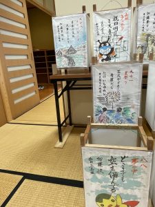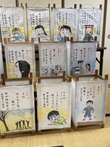 また、以前に3年生が詠んだ狂俳のいくつかが、灯籠に姿を変え展示されてもいました。さすがは中学生、詠まれている内容が実に若々しい⁉️