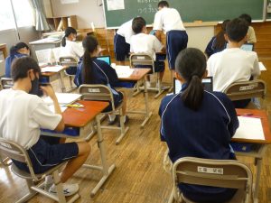 同じ時間、A組は数学の授業で練習問題に取り組んでいました。まずは自身で問題と向き合い、時に仲間と、時に教科担任と対話しながら解いてゆきます。答え合わせをしたら「はい、終わり」ではありません。ワークやタブレットPCを活用し、さらに多くの問題に挑戦します。授業の中でも、生徒たちは Next One(これまで以上)を求めています。