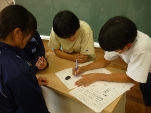 後期の清掃学活も、前例踏襲を排し Next One(これまで以上)を求めたものとなりました。具体的な改善点は、前期班から後期班への引継ぎ時間の確保です。後期班による清掃計画は、「汚れがちになる場所」「忘れがちな場所」「毎回清掃すべき場所と時々やればいい場所」等、前期の実績を踏まえた上で立てられました。計画後には、道具や動き方を確認しながら実際に清掃活動をしてみました。