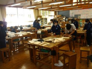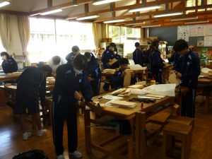 ◆さて、10/29のブログでは、技術科でかんなの使い方を学んだことを紹介しました。本日の技術科授業も木工でしたので、その様子を観るため木工室の扉を開けると⋯シャッシャッ、シュッシュッと心地よい音が耳に飛び込んできます。かんな、やすり、のこぎり、さらに言えばクランプや万力、直角定規やさしがねといった道具を使い、生徒たちが木材を寸法通りに整えることに挑戦していたのです。道具の奏でる音のハーモニーに、やはり “成長・進歩” を感じました。前回と比べれば、明らかに道具の使い方が上達しています‼️