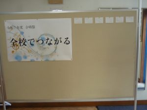 生徒会では『全校でつながる』を合唱祭のスローガンとし、取組を通じてその実現を目指します。そのため、合唱委員会では例年より多めの合唱交流会を計画しました。また、昨日からは職員室前の特設掲示板にスローガンを貼り出し、3年生から1年生へ、1年生から2年生へ、A組からB組へ⋯といった具合に、学級・学年を越えての良いこと見つけを展開しています。