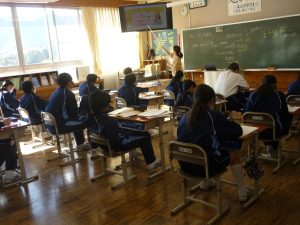 同じ時間、B組は英語でした。本時の課題は「道案内をしよう」。用意された地図を見ながら、英語での道案内に挑戦です。「2つ目の信号を左へ曲がる」「少し進むと」⋯まずは教科担任が例を示し説明の仕方を助言をします。そう、「学」です。それを踏まえ、この後は仲間を外国の方に見立て、聞かれた場所を英語で道案内するという「思(=考)」の場が用意されています。さらに考えれば、近い将来、街で外国の方に道を聞かれ、英語で道案内する機会があるかも知れませんね。そんな将来に「思(=考)」を存分 発揮できるよう、今、「学」も「思(=考)」も、その両方を大切に学習しています。