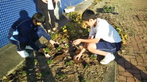 稲津町まちづくり推進協議会から分けていただいたパンジー&ビオラを、校内の花壇やプランターに植えています。校務員さんが中心となっての作業ですが、生徒たちもそれを気持ちよく手伝ってくれます。これから本格的な冬に突入しますが、それを乗り越え春となり、パンジー&ビオラは、きっと色鮮やかに咲き誇ることでしょう🏵️