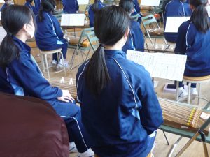 音楽「琴」の学習は三年間にわたります。ただし、当然ながら全学年で同じ学習をするのではありません。学年が上がるにつれて学習の難易度は上がり、曲の、より高い完成度を求めます。