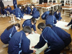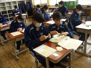 来年度の新2・3年生は、令和8年度を見通し「こんな南中にしたい、こんな自分になりたい」「そのためにこんな一歩を踏み出したい」という決意を紙にしたためました。下は、それらをB紙に貼り付けている現2年生(=新3年生)の様子です。Next One ! な来年度に向け、着実に動き出しています😤